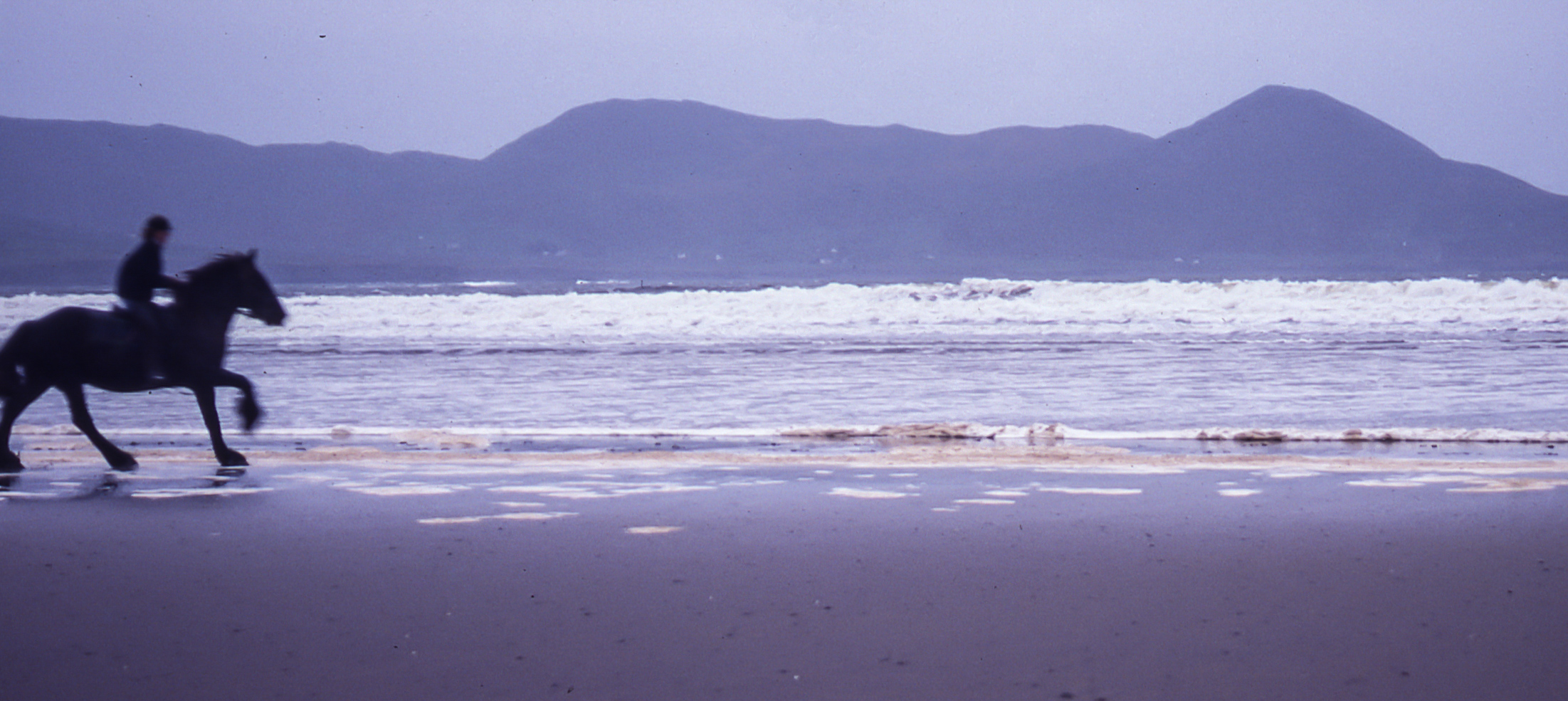 By mid-afternoon, we again don our chaps, waterproof slickers, rubber boots, and gloves before climbing back in the saddle just in time to be greeted by an extended burst of sunshine. Well outfitted as we are, the rain has added to our adventure. Now, with the sun on our backs, the Connemara recover their energy, and the afternoon beach run becomes a fitting climax to a full day.